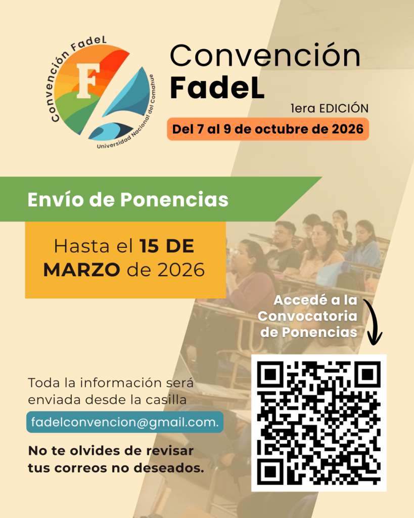 La Facultad de Lenguas organiza eventos y reuniones científicas para la comunidad de investigadores, docentes y estudiantes en las áreas de lingüística, enseñanza de lenguas, traducción y otras temáticas de las ciencias sociales. Cuenta con aulas equipadas para el desarrollo de conferencias y presentaciones, y un predio totalmente parquizado para actividades al aire libre. Los asistentes y expositores que nos visitan tienen la posibilidad de participar en los eventos y planificar salidas y actividades para conocer los distintos actractivos de nuestra región en el norte de la Patagonia.