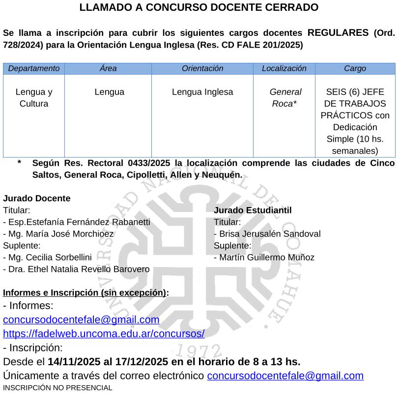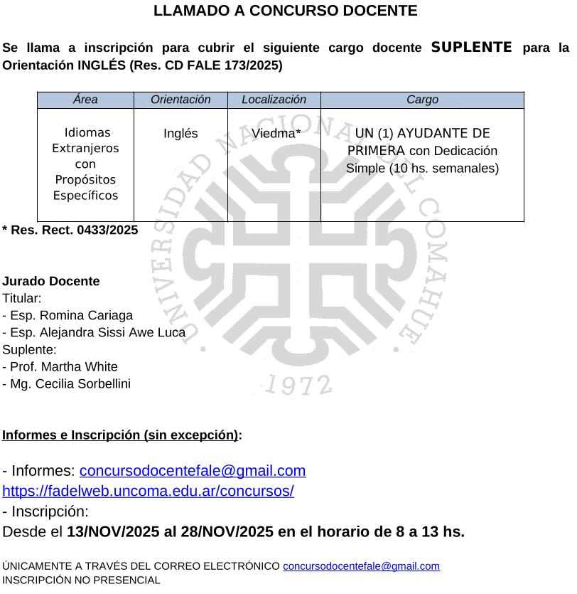Reglamento de concursos para la cobertura de cargos interinos de Auxiliares.