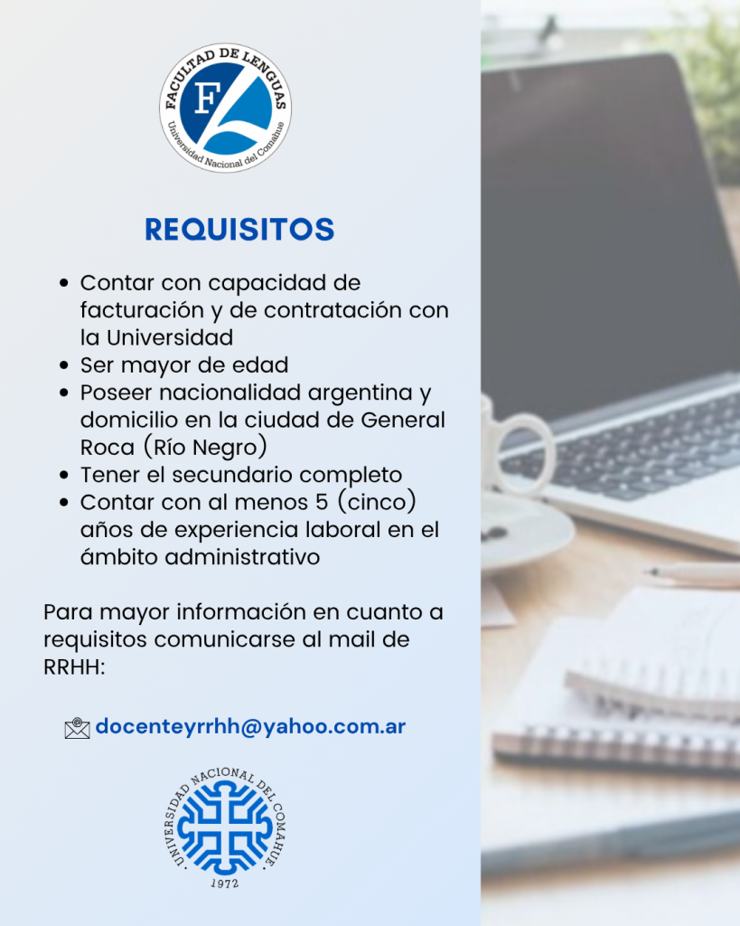 Presentar CV y nota formal en oficinas de Recursos Humanos de la Facultad de Lenguas.